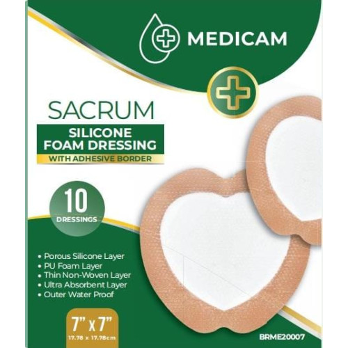 Medicam Sacrum Silicone Foam Dressing, 7"x7" (10pcs)