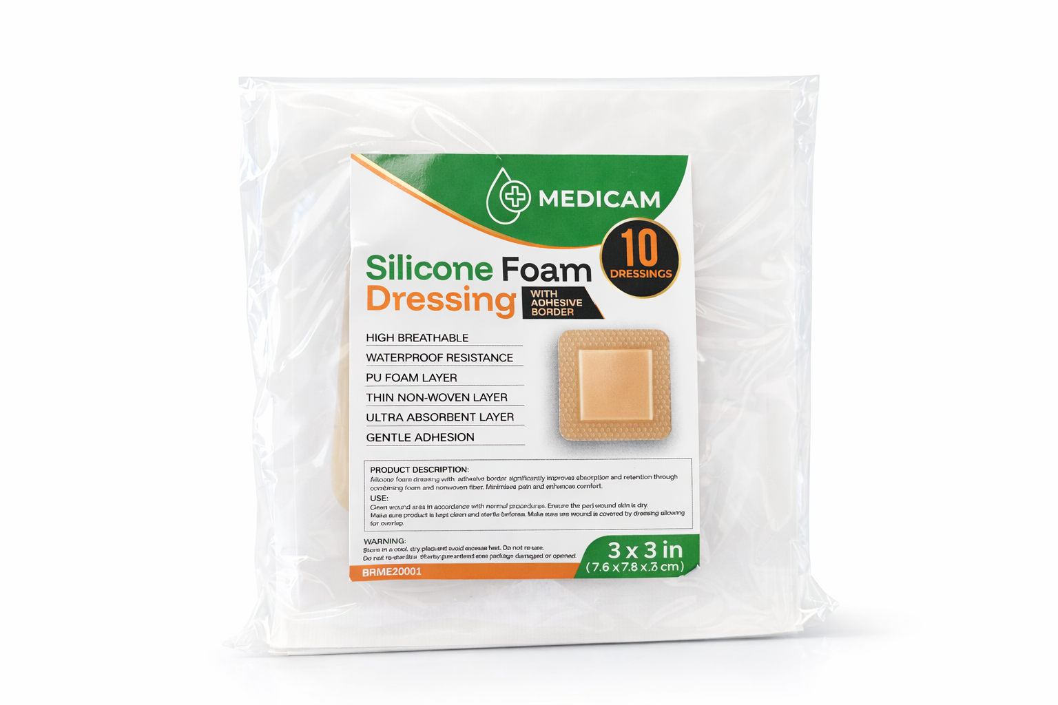 PROMOTES HEALING: Medicam bordered silicone dressings offer effective absorbency, are comfortable to use and provide the optimal environment to promote healing. The self adhesive multilayer structure helps create an optimum healing environment by keeping the wound moist and preventing contamination/activity.